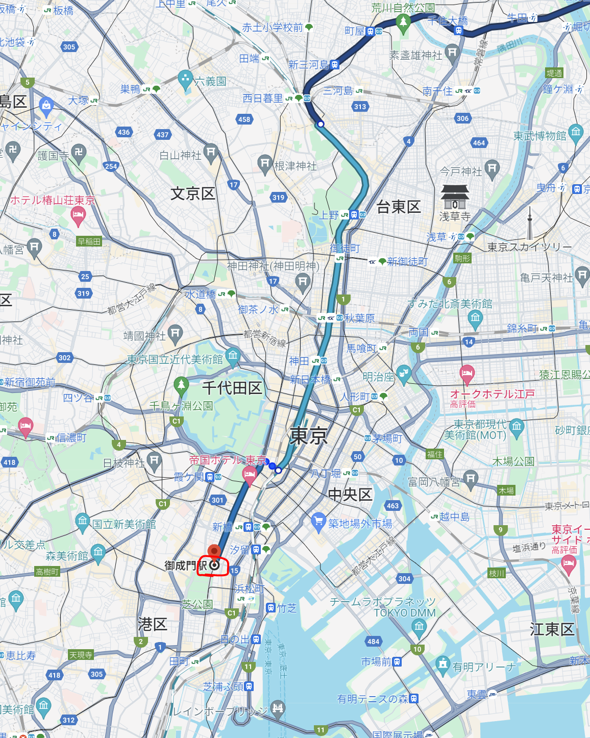 這條路線雖然換乘次數較多,但是終點站御成門車站距離東京王子大飯店比較近,這樣就免去了很多查地圖的時間,也是一個不錯的選擇。