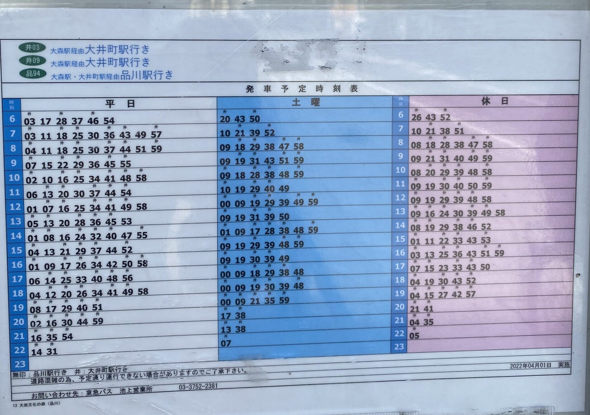 注意,工作日(平日),週六(土曜),週日以及節假日(休日),巴士的到站時間以及班次数量不同。